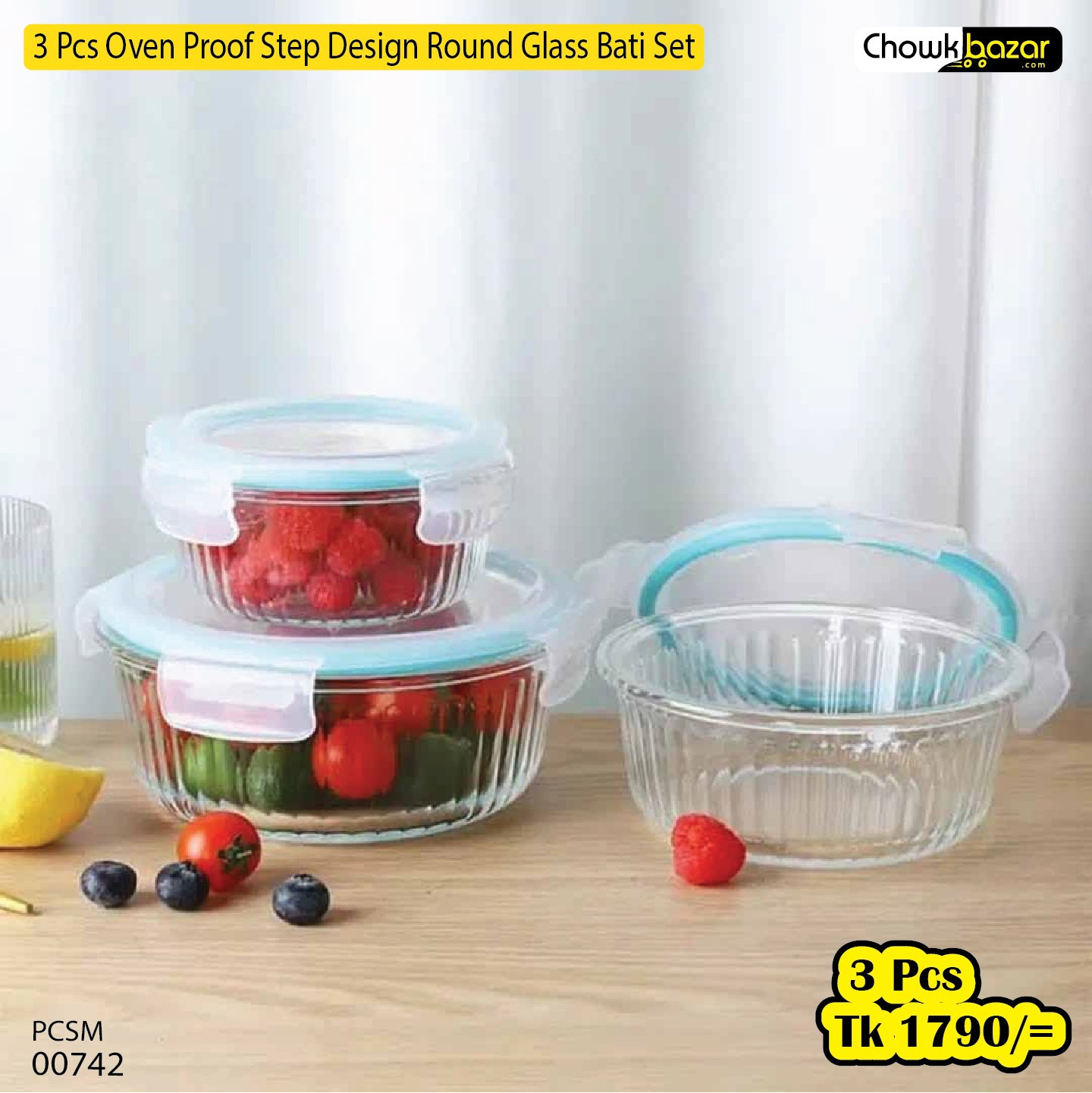 Be the first to review “3Pcs Oven Proof Stap Design Round Glass Bati set 00742” Cancel reply