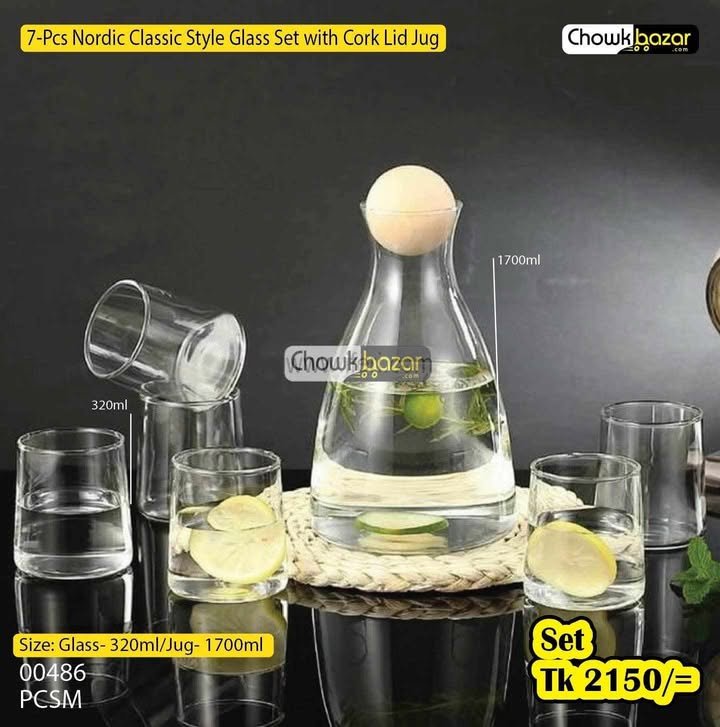 7-Pcs Nordic Classic Style Glass Set With Cork Lid Jug 00486